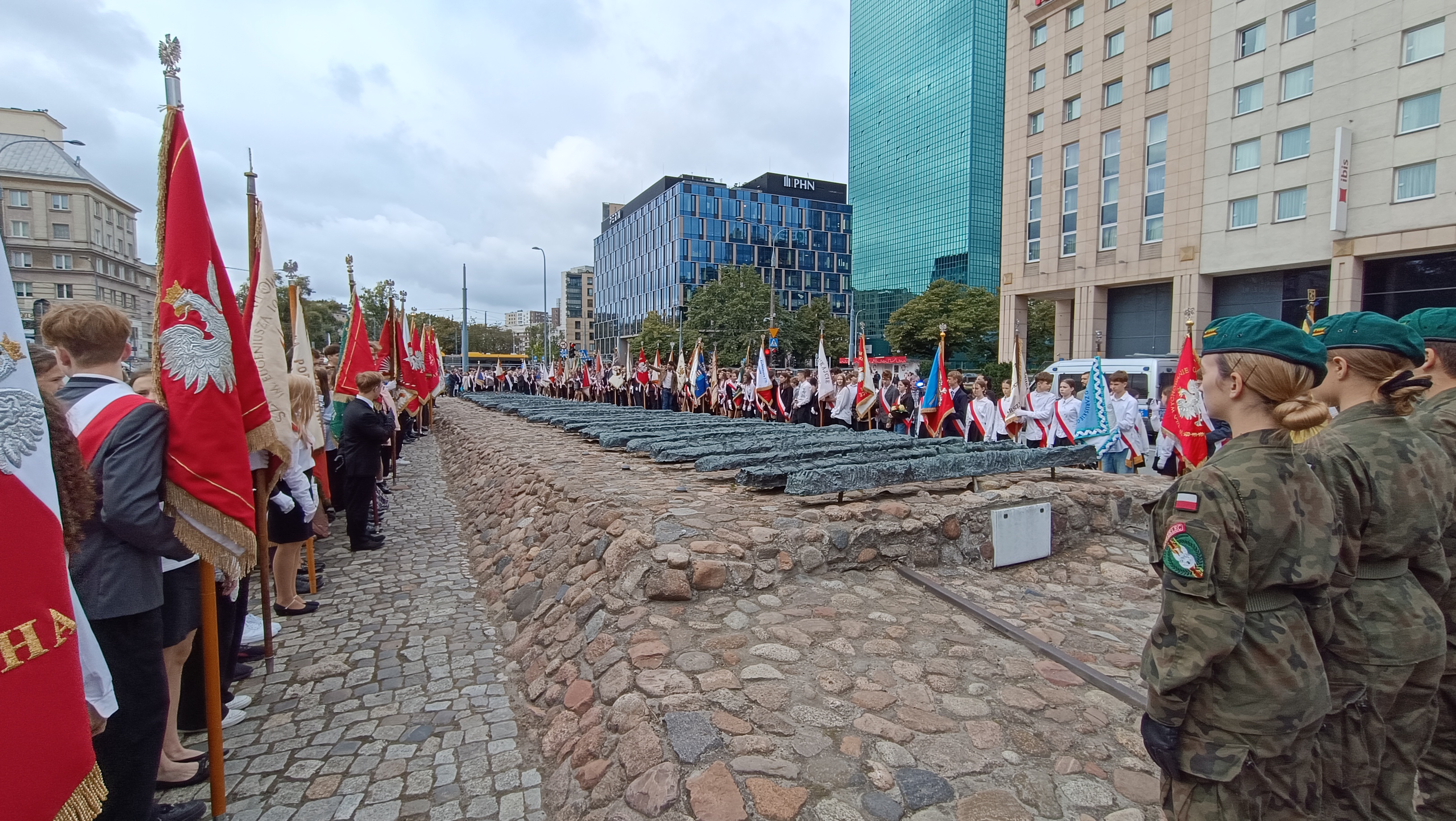 W uroczystości wzięły udział licznie zgromadzone poczty sztandarowe oraz delegacje warszawskich szkół podstawowych i średnich, wśród których był także poczet Zespołu Szkół Poligraficznych.
