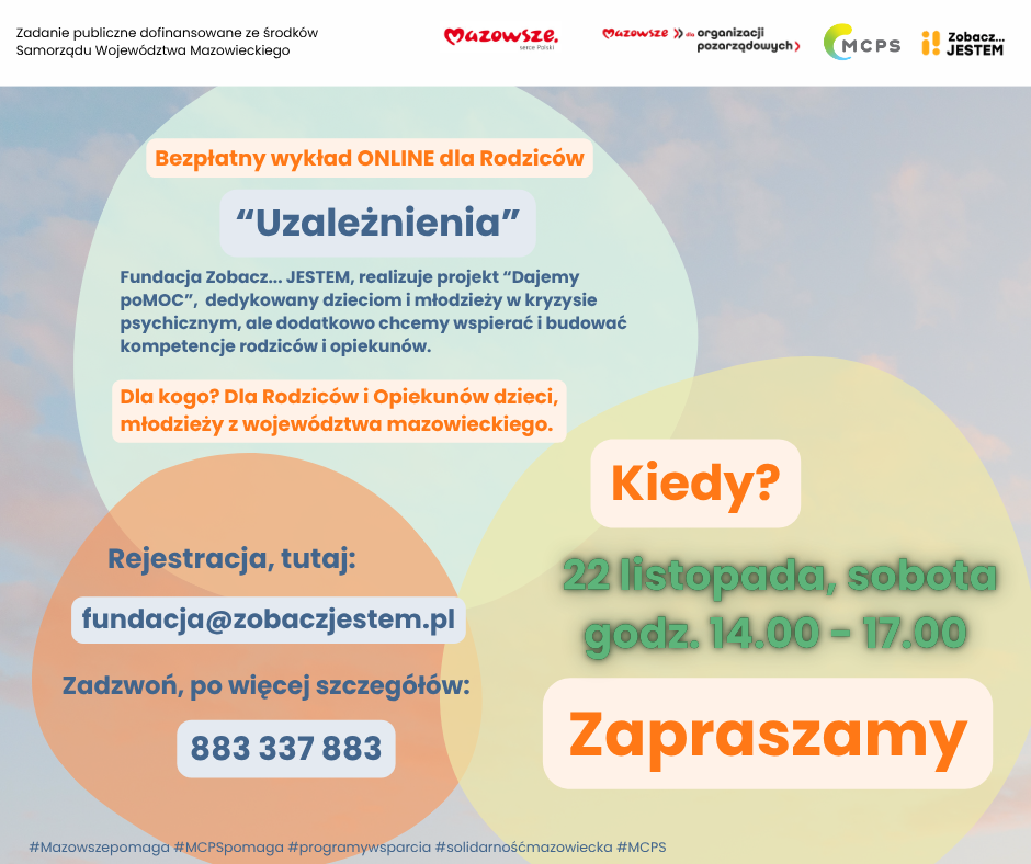 w imieniu Fundacji "Zobacz... Jestem" przekazujemy informację o planowanych warsztatach dla młodzieży oraz wykładzie dla rodziców.