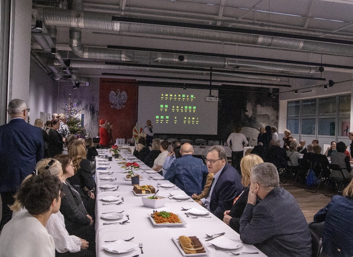 18 grudnia 2025 roku w Technikum Poligraficznym odbyło się tradycyjne Spotkanie Wigilijne. W wydarzeniu wzięli udział członkowie Grona Pedagogicznego, emerytowani nauczyciele, dyrektorzy, pracownicy administracji i obsługi, a także przedstawiciele Rady Rodziców oraz Samorządu Uczniowskiego. Zgromadzonych gości serdecznie powitał Dyrektor Mateusz Kozłowski, składając wszystkim świąteczne życzenia.