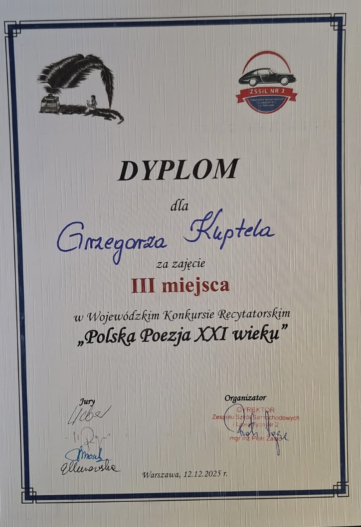 12 grudnia odbył się Wojewódzki Konkurs Recytatorski „Polska Poezja XXI wieku”, w którym wspaniale zaprezentowali się przedstawiciele naszej szkoły.