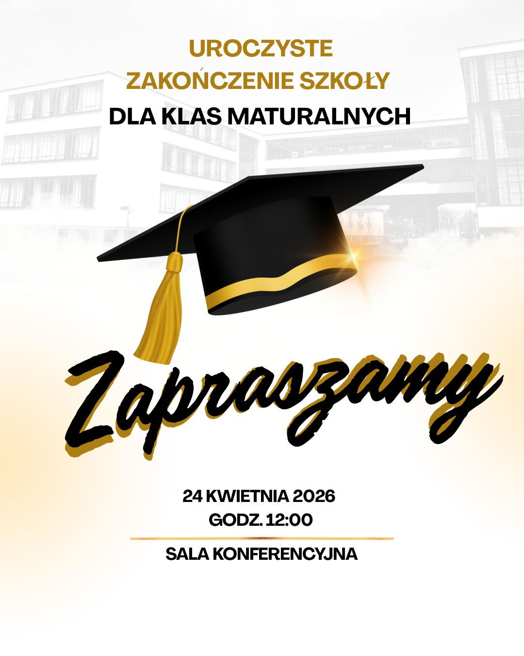 Serdecznie zapraszamy wszystkich maturzystów, Grono Pedagogiczne i pracowników administracji na uroczyste zakończenie szkoły klas 5-tych.24 kwietnia 2026r. Godzina 12:00Sala konferencyjna Do zobaczenia.#zakończenieszkoły #koniecszkoły #matura2026 #matura #zspoligraf