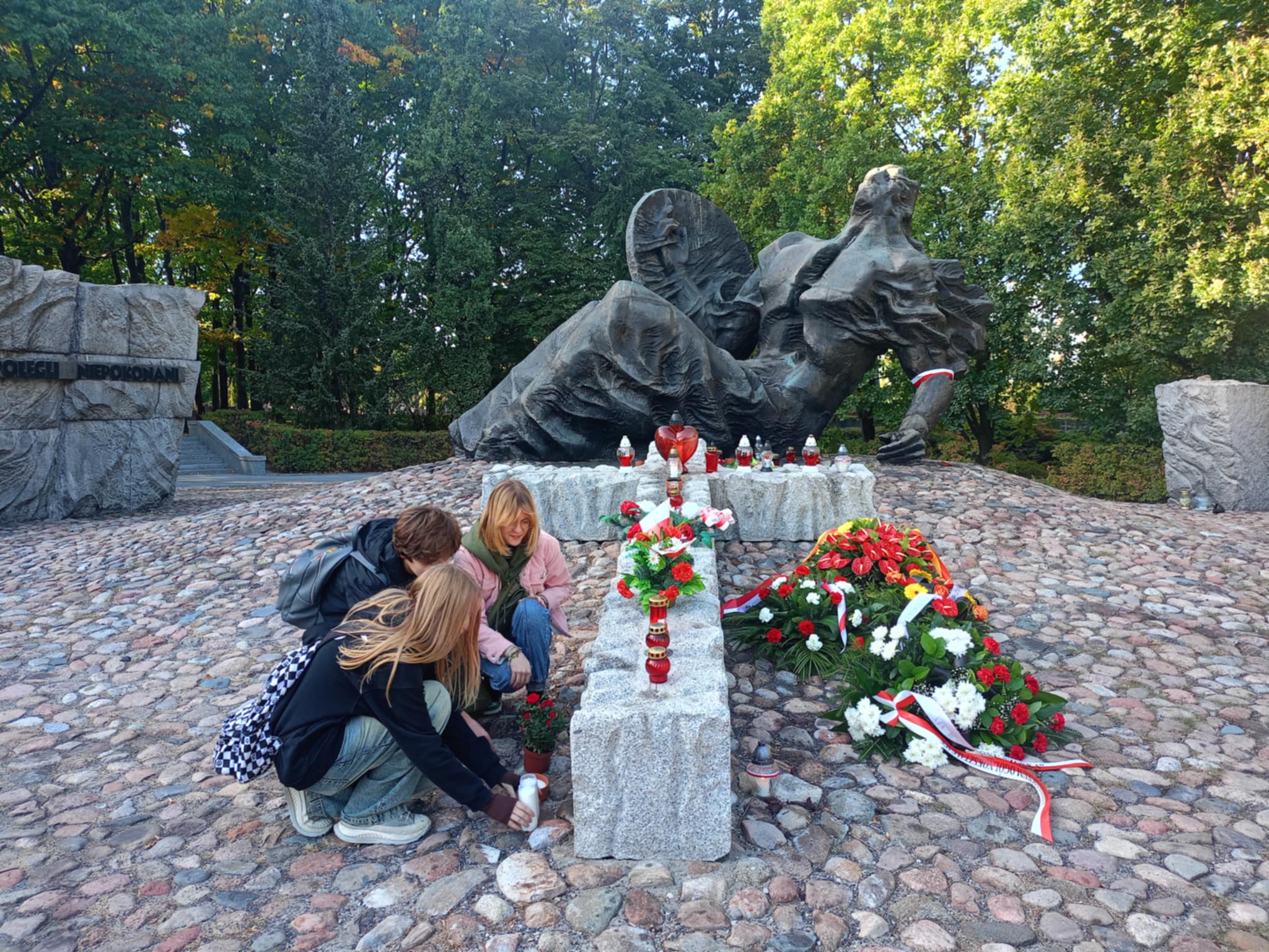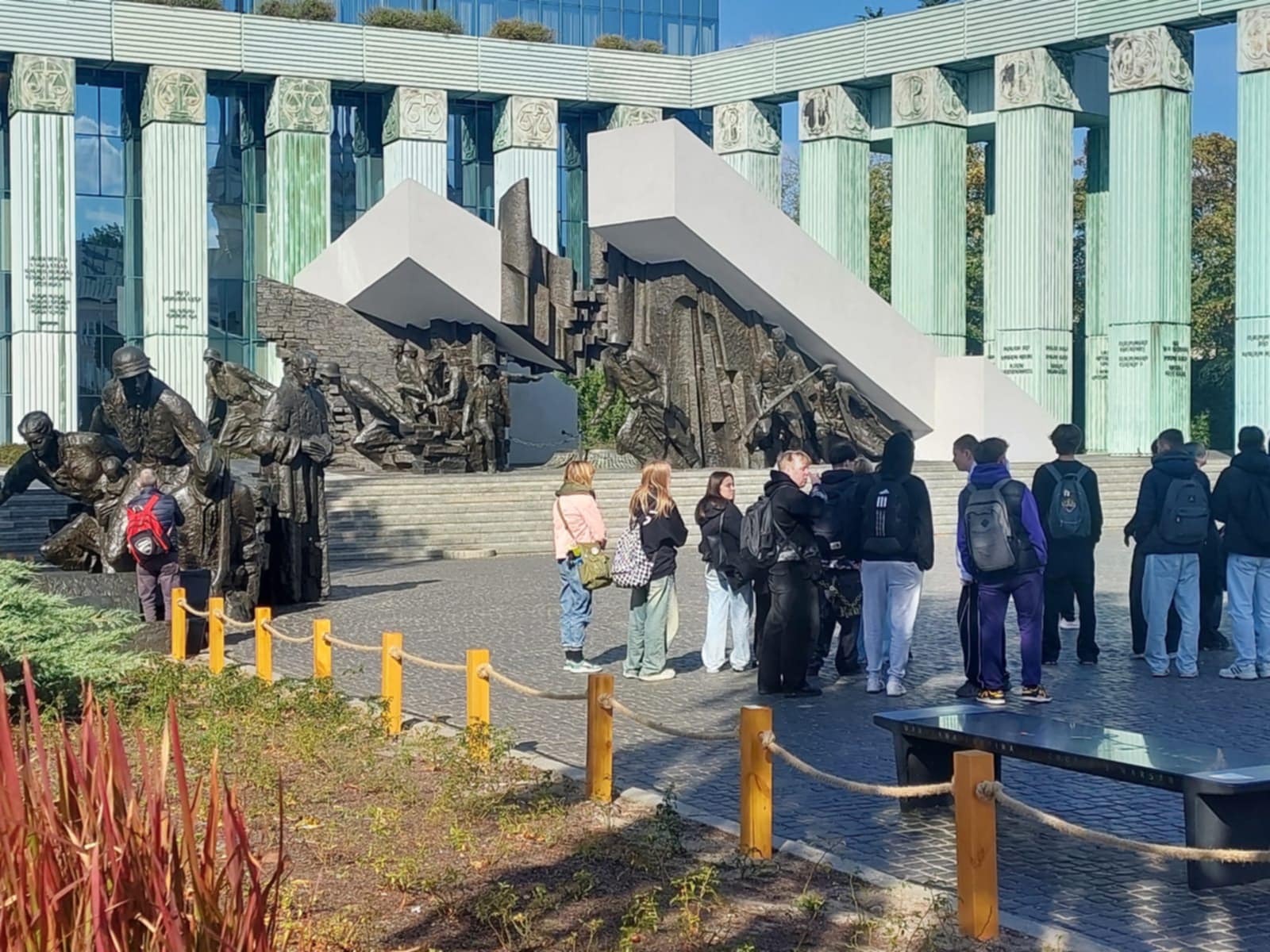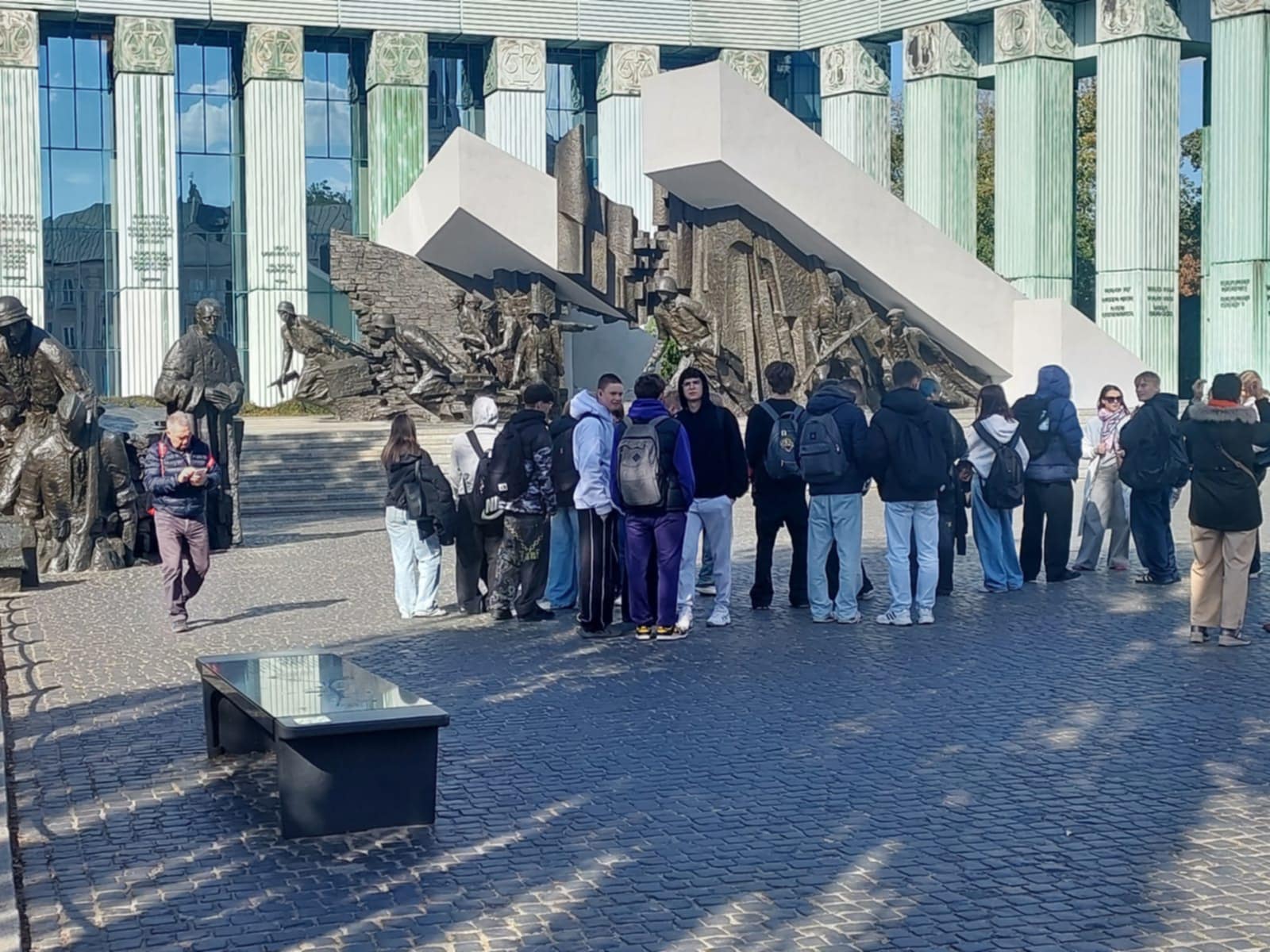 2 października 1944 r. zakończyło się Powstanie Warszawskie. Ten przejmujący zryw sprzed 81 lat, walkę o niepodległą Polskę okupioną ofiarami uczcili uczniowie Zespołu Szkół Poligraficznych. W dniu 2 października 2025r. klasy 2tr i 3tc6 uczestniczyły w patriotyczno - edukacyjnym spacerze ulicami i miejscami uświęconymi walkami powstańców. Przeszliśmy ulicami Stawki i Dziką, przystanęliśmy przy Placu Krasińskich, gdzie znajduje się właz do kanałów, gdzie z 30 na 31 sierpnia 1944r. odbyła się słynna ewakuacja walczących ze Starówki do Śródmieścia.
